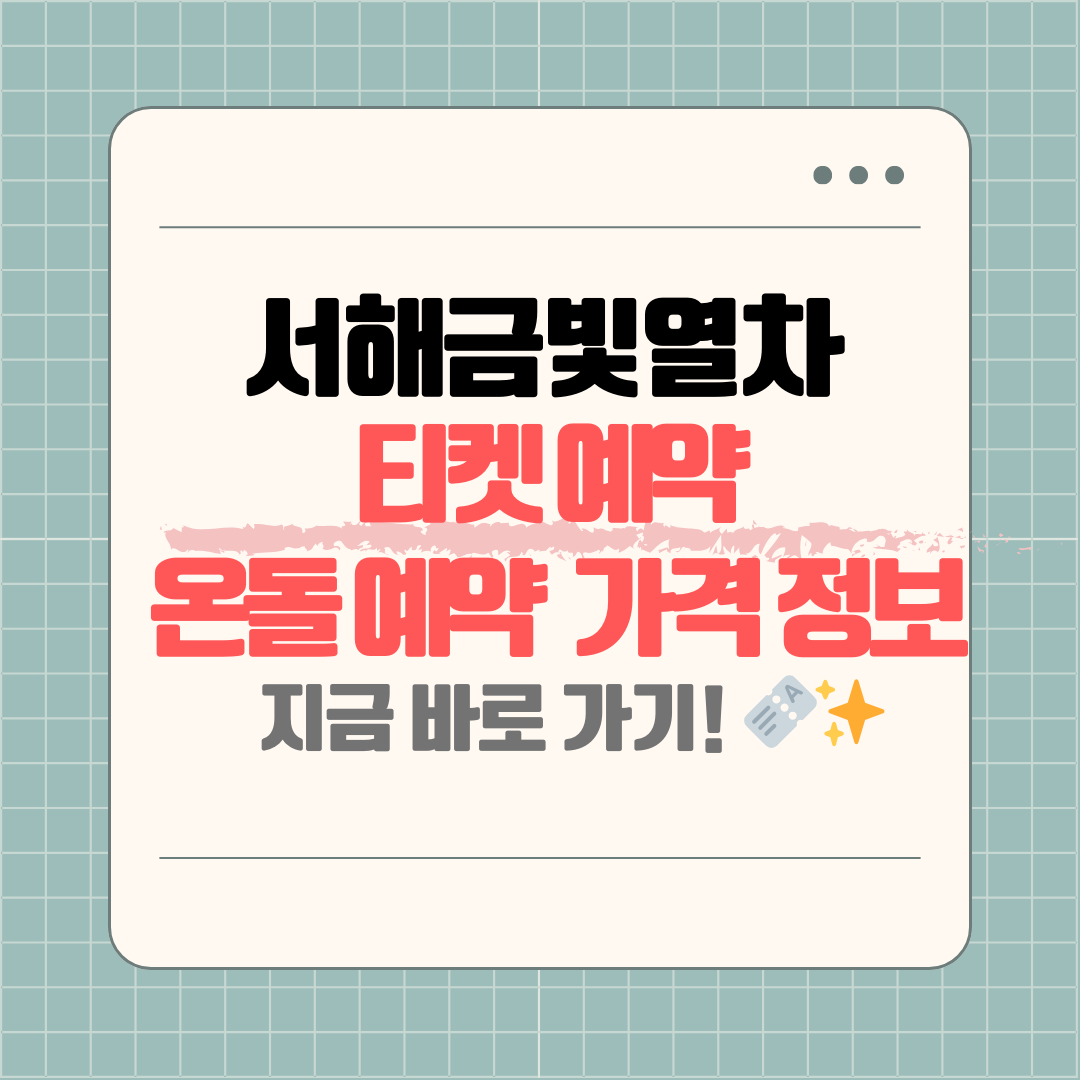 서해금빛열차 티켓 예약을 놓치지 마세요! 지금 바로 예약하고, 특별한 열차 여행을 즐겨보세요. 🎟️