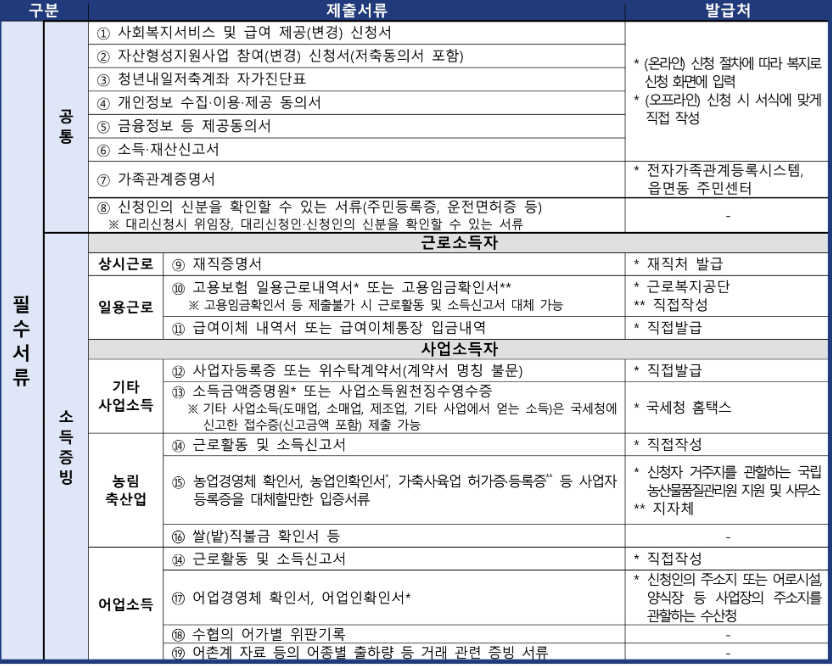 지원 신청 시 준비물