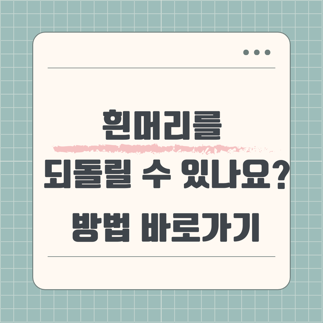 흰머리를 다시 검은 머리로 되돌릴 수 있는지에 대해 궁금해하는 사람들이 많습니다. 이 글에서는 흰머리를 되돌릴 수 있는 다양한 방법과 그 효과에 대해 알아보겠습니다. 😊