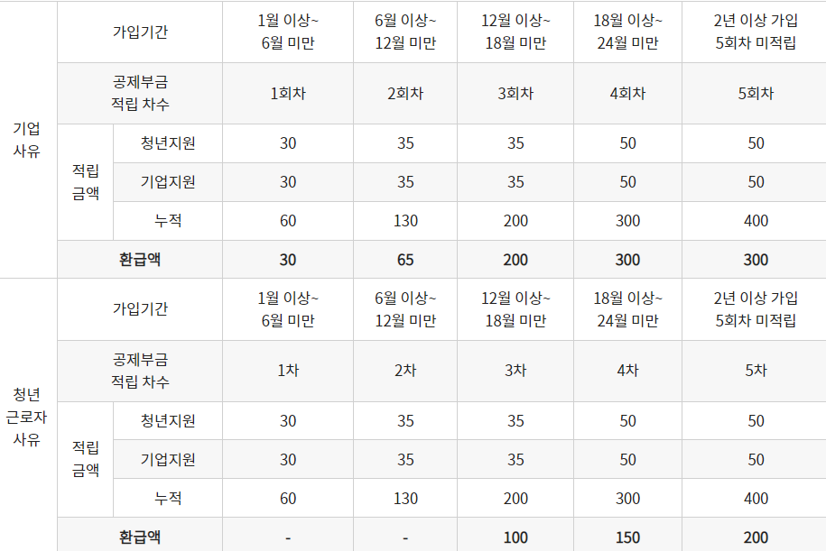 청년 내일채움공제 중도해지, 중도해지 시 환급금